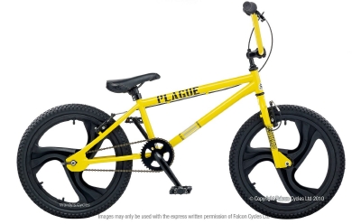 FRAME: Hi-Tensile Steel Dirt/Street BMX FORK: Hi-Tensile Steel straight blade BMX GEARS: 36T x 16T single speed system 175mm 1 piece crank STEERING: 700mm x 200mm on 4 bolt front facing quill stem BRAKES: Front side pull, rear Tektro alloy V with alloy levers WHEELS: 20” Tri Spoke Mags with 10mm Axles TYRES: Kenda 905 EXTRAS: 1 pair of 38mm freestyle pegs, set of Scorpion graphics for your personalisation. COLOUR: Acid Yellow